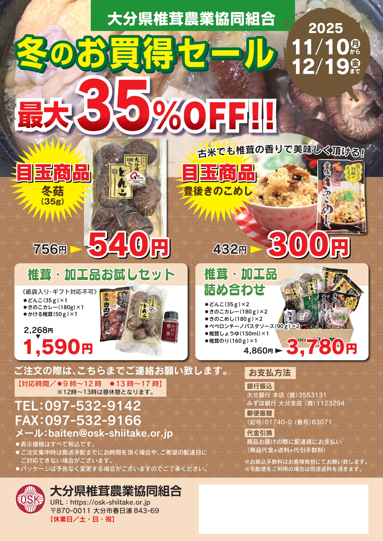 お電話・FAX・メール、直売所にてご注文受付中!